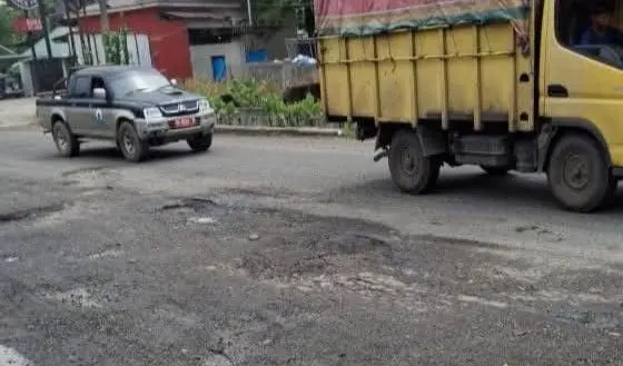 Baru Dua Bulan Diperbaiki, Jalan HM Yamin Tebing Tinggi Rusak