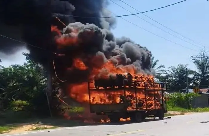 Truk Angkut 24 Motor Terbakar di Langkat, Kerugian Ditaksir Rp700 Juta