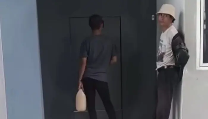 Video yang diunggah di Instagram itu memperlihatkan seorang pria mengenakan celana panjang hitam dan kaos abu-abu membawa jerigen berisi cairan putih susu.