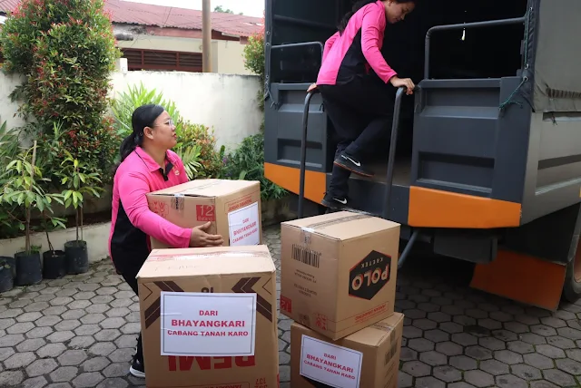 Peduli Sesama, Bhayangkari Cabang Tanah Karo Kirim Bantuan ke Daerah Terdampak Banjir