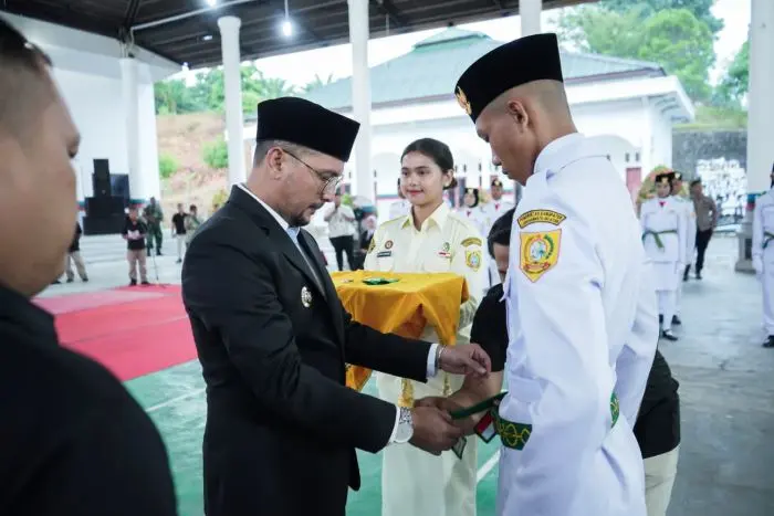 Bupati Fery Kukuhkan 70 Paskibraka 2025 Labusel, Titip Pesan Soal Disiplin dan Nasionalisme