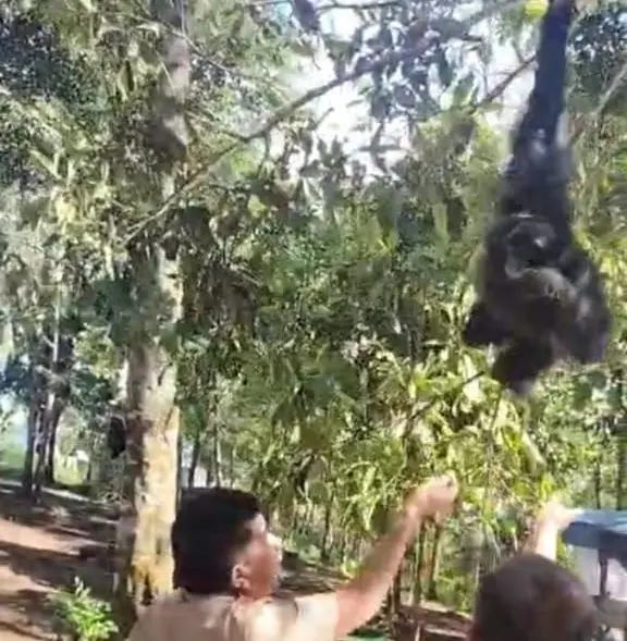 Unik! Siamang Nongkrong dan Ngopi Bareng Pejabat Tapsel, Jadi Hiburan Warga