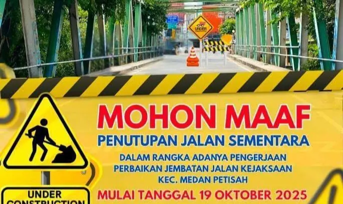 Mulai 19 Oktober, Jalan Kejaksaan Medan Ditutup karena Rehabilitasi Jembatan