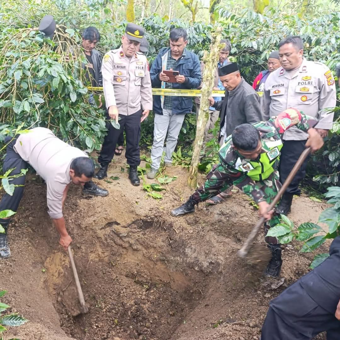 Mayat seorang wanita yang dikubur dalam tanah ditemukan oleh warga dan petugas kepolisian dan warga di Kampung Uning Teritit, Kecamatan Bukit, Kabupaten Bener Meriah, pada Kamis (30/1).